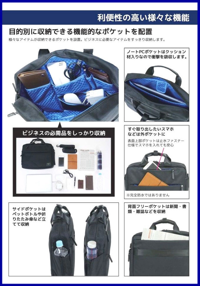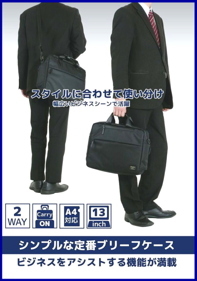 スターツコラボ第2弾!! 外観はシンプルながら多くのポケットを備えたブリーフケース。内装は鮮やかなブルーのブロックチェック柄を採用し、スッキリした印象に。 ビジネスシーンやPC環境に必要な小物を入れるポケットが充実し、使い勝手の良さをを考慮したモデル。セットアップ可。 ショルダーベルトは長さ調整可(ベルト長さ 約88~133cm)※PCサイズにより入らない場合があります。PCの不具合や故障等は保証対象になりません。