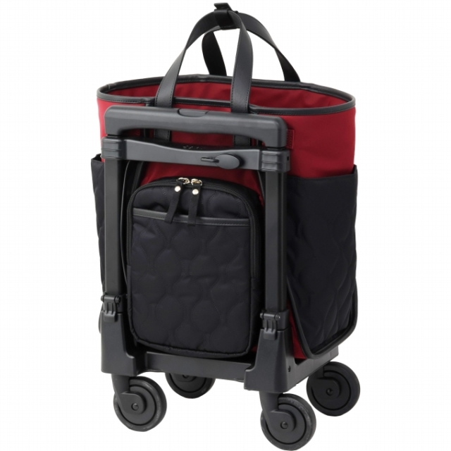 好評のプーフォに「ブラック×レッド」がデビュー!エスペラント語で「羽根布団のようなふくらみ」という意味を持つ、プーフォ。バッグの大胆なカッティングによりサイドポケットが広くなり、サイドポケットにペットボトルや折り畳み傘が入れやすいという機能的な面も持ち合わせています。新しい「スワニーモノグラムロゴ」はSWANYの5文字をロゴデザインに組み込んでおります。フレームは使いやすいターンスイッチを搭載しています。キャスターも静音設計された「T2キャスター」と、埃や髪の毛などの侵入を軽減する「ダストガードキャスター」を搭載し、グレードアップしました。 またSDGsの一環として内装生地に「再生ポリエステル」を使用しました。内装はグレーです。