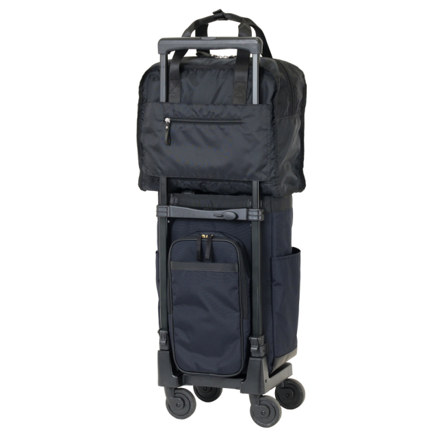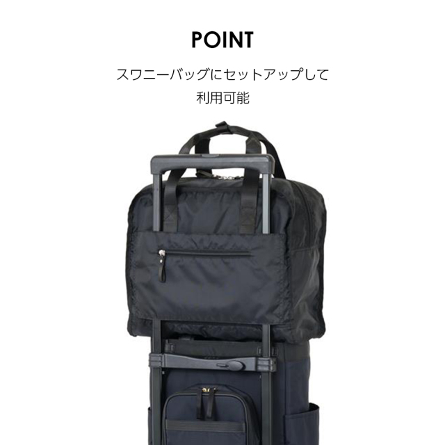 背面には、ハンドル通しが付いていて、スワニーバッグの上にセット可能!