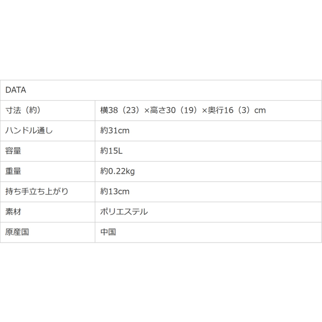 横38(23)×高さ30(19)×奥行16(3)cm ()は折り畳んだサイズ |
