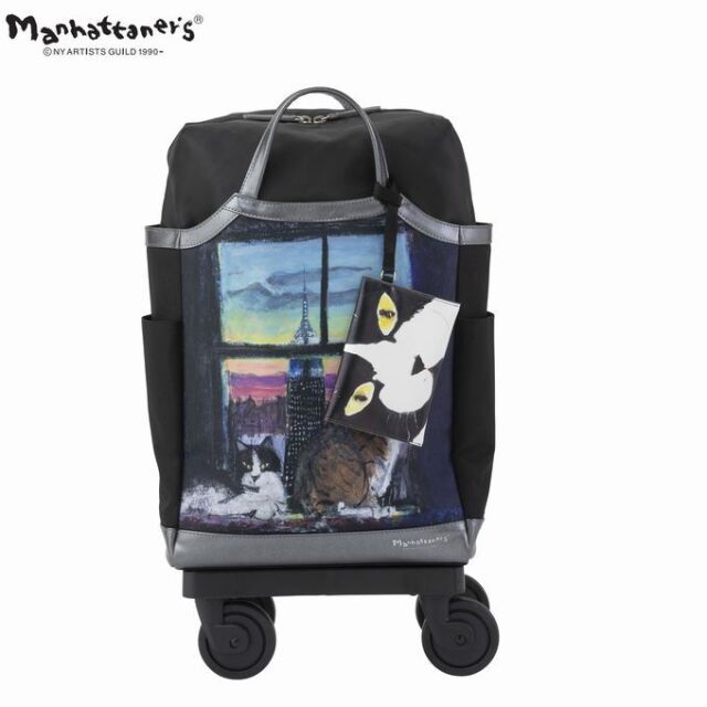 【マンハッタナーズ『窓辺でしんみり』】SWANYのキャリーバッグにマンハッタナーズが登場!画家 久下貴史氏が描く猫たちやニューヨークの街並みが再現性高くプリントされ、作品と一緒にお出かけを楽しんでいただきたいシリーズです。