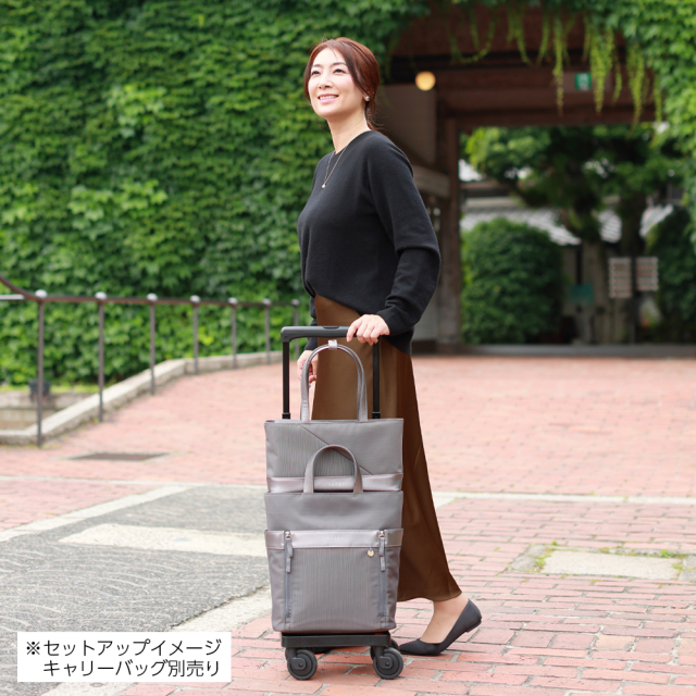 スクエア型のすっきりとしたのトートバッグは自立した持ち手で肩もかけしやすく、