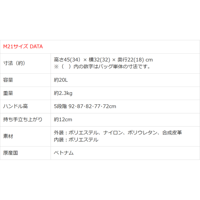 | 素材 | 外装:ポリエステル、合成皮革 内装:再生ポリエステル |